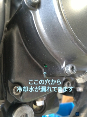 そうなる前にこの穴から冷却水をリークさせて、ライダーにお知らせする賢い機能です。
