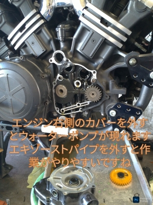 水冷エンジンには冷却水を循環させるためのポンプが付いておりまして、