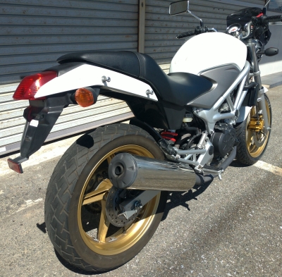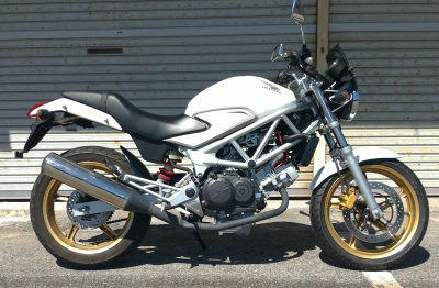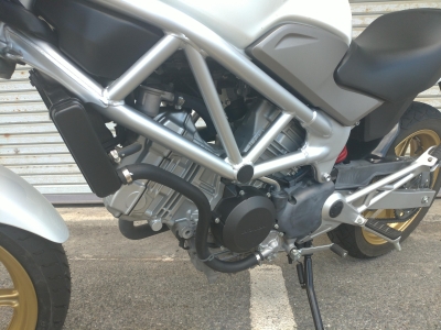 水冷V型2気筒DOHCエンジン+5速ワイドレシオミッションの組み合わせで街乗りやツーリングに最適に作られています。フレーム、足回りも、必要十分な簡素なもの。
