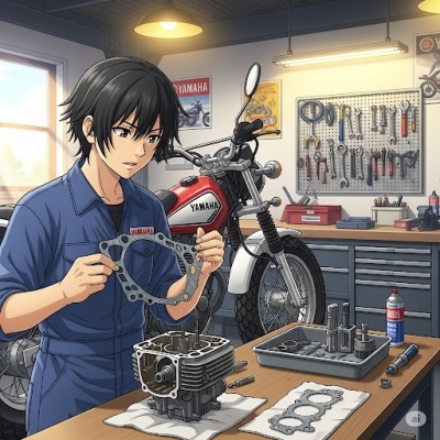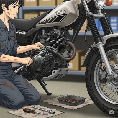 2001年式TW200のシリンダーベースガスケットからオイル漏れが発生いたしました。