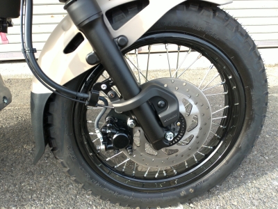 車体は前後ともロングストロークのサスペンション + 16インチスポークホイール、
